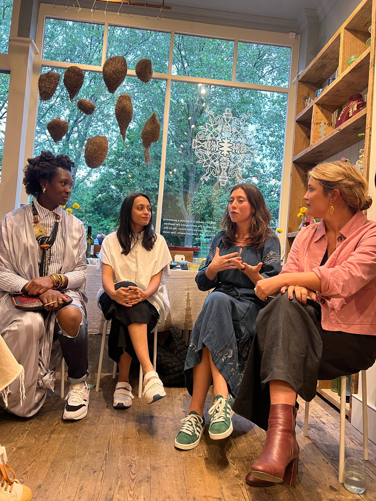 Moderated by Iaia founder Arianna Calabrese, the discussion featured Chrissa Amuah of AMWA Designs, Spandana Gopal of Tiipoi, and Tashi Goldring of Turquoise Mountain. Together, they examined questions of cultural ownership, authorship, and exchange—asking how we can move beyond the binary of designer and artisan, and how heritage crafts might evolve without losing their integrity.